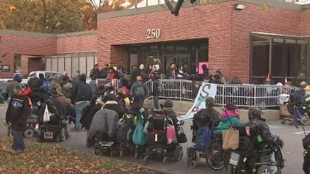 At one point 200 demonstrators, many in wheelchairs, were at the Judge Rotenberg Educational center in Canton.