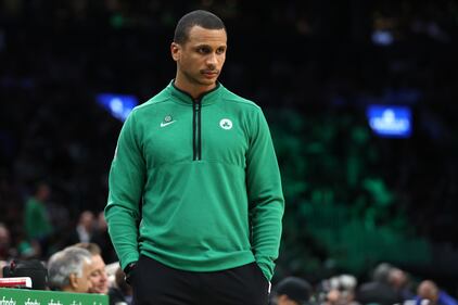 Philadelphia 76ers v Boston Celtics BOSTON, MASSACHUSETTS - OCTOBER 18: Boston Celtics interim head coach Joe Mazzulla looks on during the second half against the Philadelphia 76ers at TD Garden on October 18, 2022 in Boston, Massachusetts. The Celtics defeat the 76ers 126-117. NOTE TO USER: User expressly acknowledges and agrees that, by downloading and or using this photograph, User is consenting to the terms and conditions of the Getty Images License Agreement. (Photo by Maddie Meyer/Getty Images)
