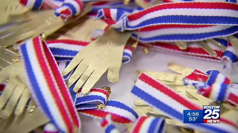 Many of the medals which Mitchell made are honoring phlebotomists, those who draw blood, at Morton Hospital in Taunton.