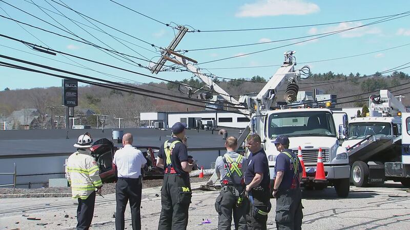 “When we got there, the top half of the pole was actually hanging above the car as the firefighters were working trying to extricate the person from that car,” said Chief Bill Brooks of the Norwood Police Department.