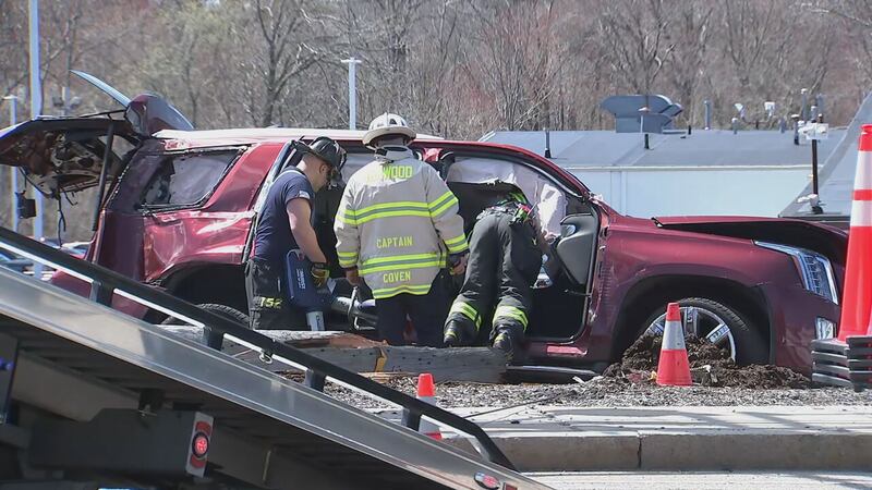 Emergency crews responding to multiple 911 calls for a crash near the intersection of Route 1 and University Avenue found the roof sheered off a white vehicle and a heavily damaged red SUV, both of which had one person trapped inside, according to the Norwood Fire Department.
