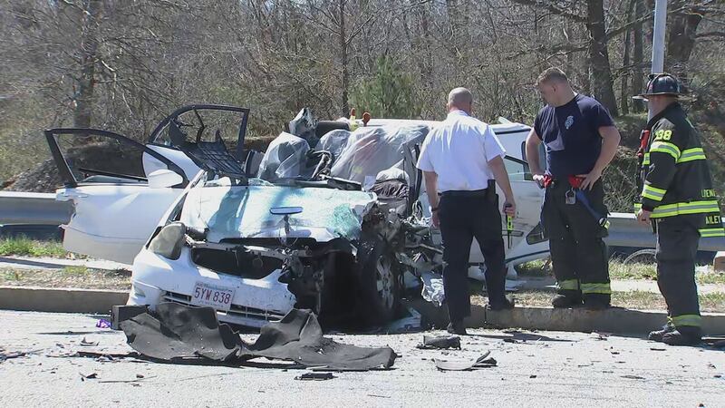 A medical helicopter was called to the scene while officials worked to extricate the trapped motorists. One victim was flown to a Boston hospital, while the second victim was taken to another city hospital via ambulance.