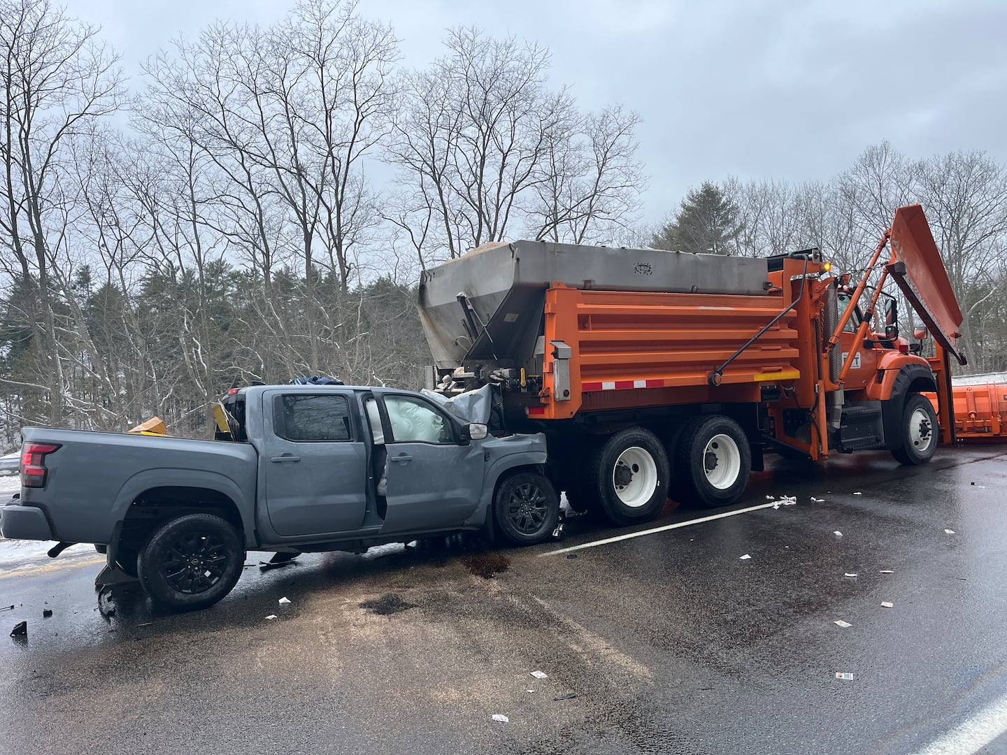 Just after 9:30 a.m. Friday, troopers responded to a reported crash between a pickup truck and a DOT plow truck on Route 16 North near Exit 7 in Dover, state police said in a statement.