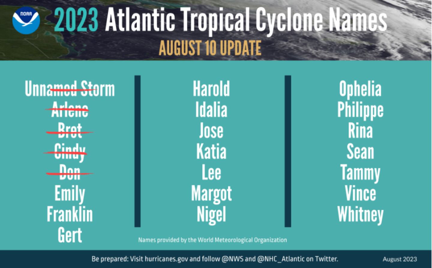 “The main climate factors expected to influence the 2023 Atlantic hurricane activity are the ongoing El Nino and the warm phase of the Atlantic Multi-Decadal Oscillation, including record-warm Atlantic sea surface temperatures,” said Matthew Rosencrans, lead hurricane season forecaster with NOAA’s Climate Prediction Center. “Considering those factors, the updated outlook calls for more activity, so we urge everyone to prepare now for the continuing season.”