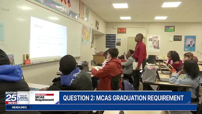Massachusetts Ballot Question 2 has to do with the elimination of the MCAS as a high school graduation requirement.