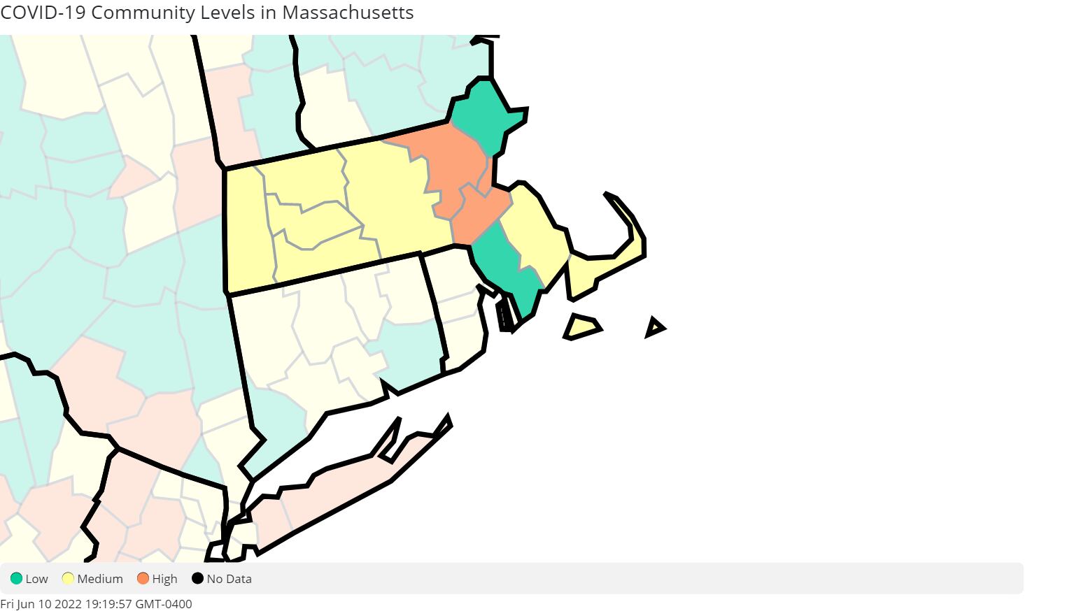 Seven counties, including Worcester, Plymouth, and Dukes, are now considered to be “medium” risk.
