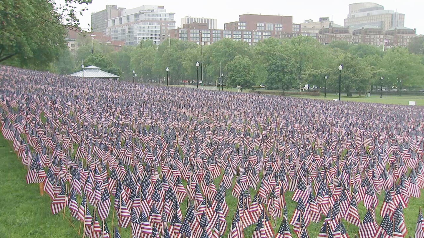 BOSTON — More than 37,000 American flags were placed on Boston Common ahead of Memorial Day weekend in honor of fallen service members who called Massachusetts home.