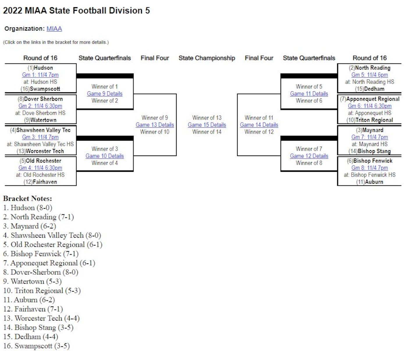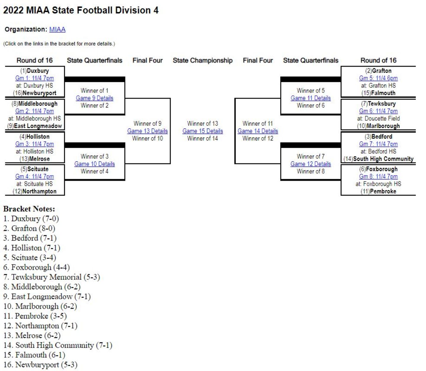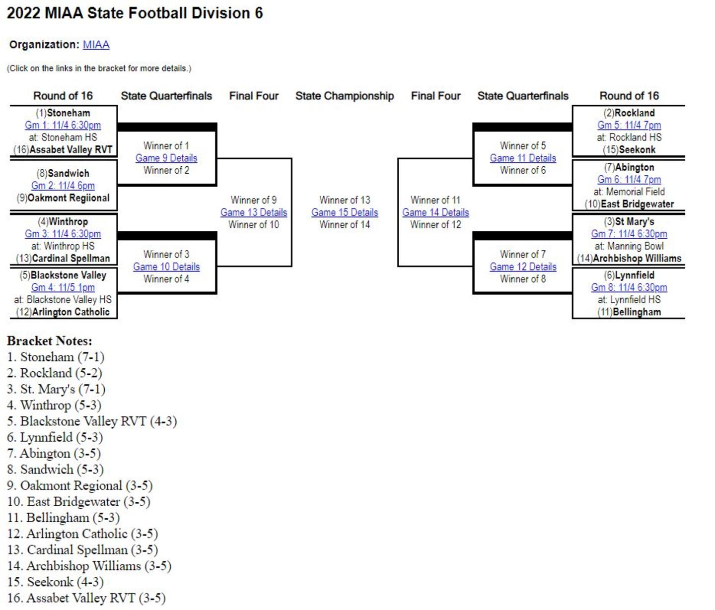 FRANKLIN, Mass. — The matchups are now set. The MIAA has released its playoff teams and schedules for the 2022 high school football tournament.