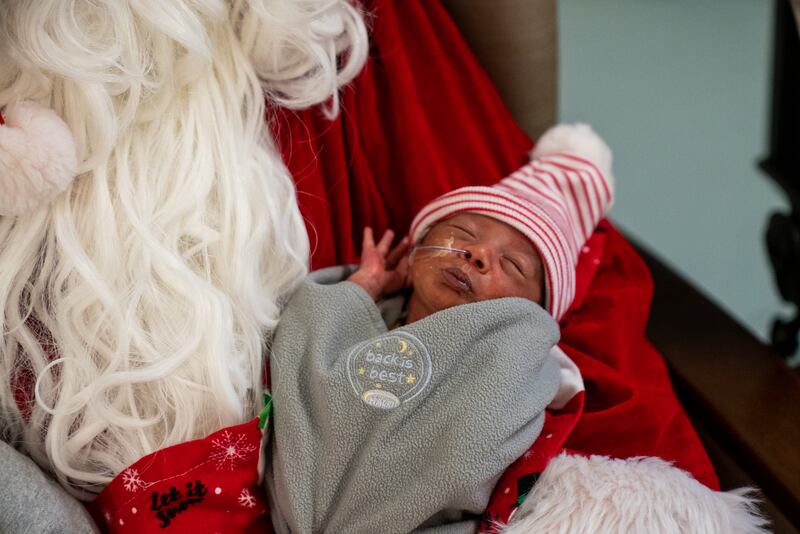 “While this time of year can be difficult for our patients’ families, the Brigham team helps families reimagine Baby’s First Holiday Season by sharing many holiday traditions with the NICU, such as books, blankets, decorations, music, holiday jammies, and even a visit from Santa Claus,” the hospital wrote.