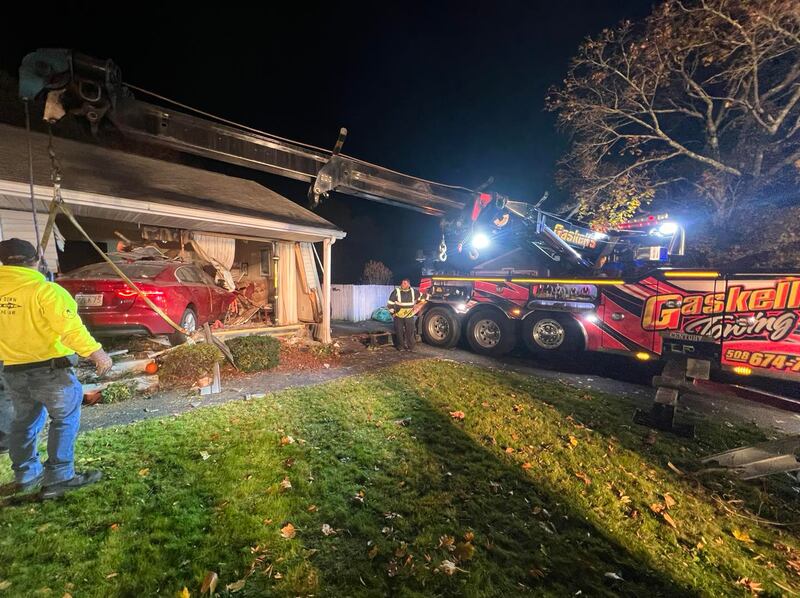 Crews responding to the area of Bark Street and Ashmont Street for a vehicle that struck a building found a car had slammed into the living room of a house, according to the Swansea Fire Department.