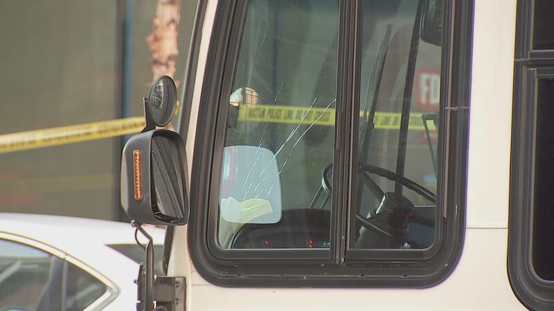 Video from the scene showed a crack in the bus’ windshield and multiple police officers gathering evidence.