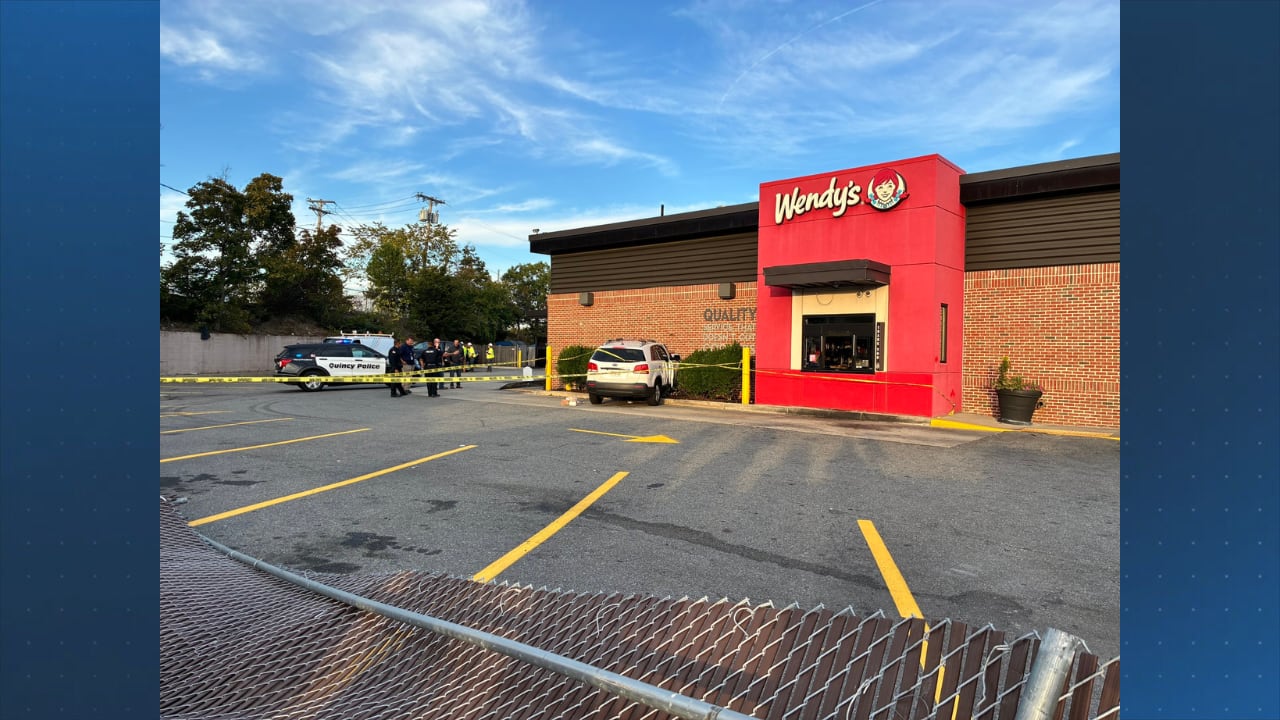 QUINCY, Mass. — A car slammed into the side of a Wendy’s in Quincy on Monday.