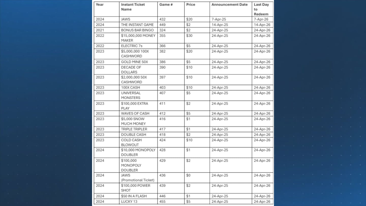 Under standard lottery procedures, players have one year from the date of an End of Game Announcement to claim any prizes before the funds are returned to the state, officials said.
