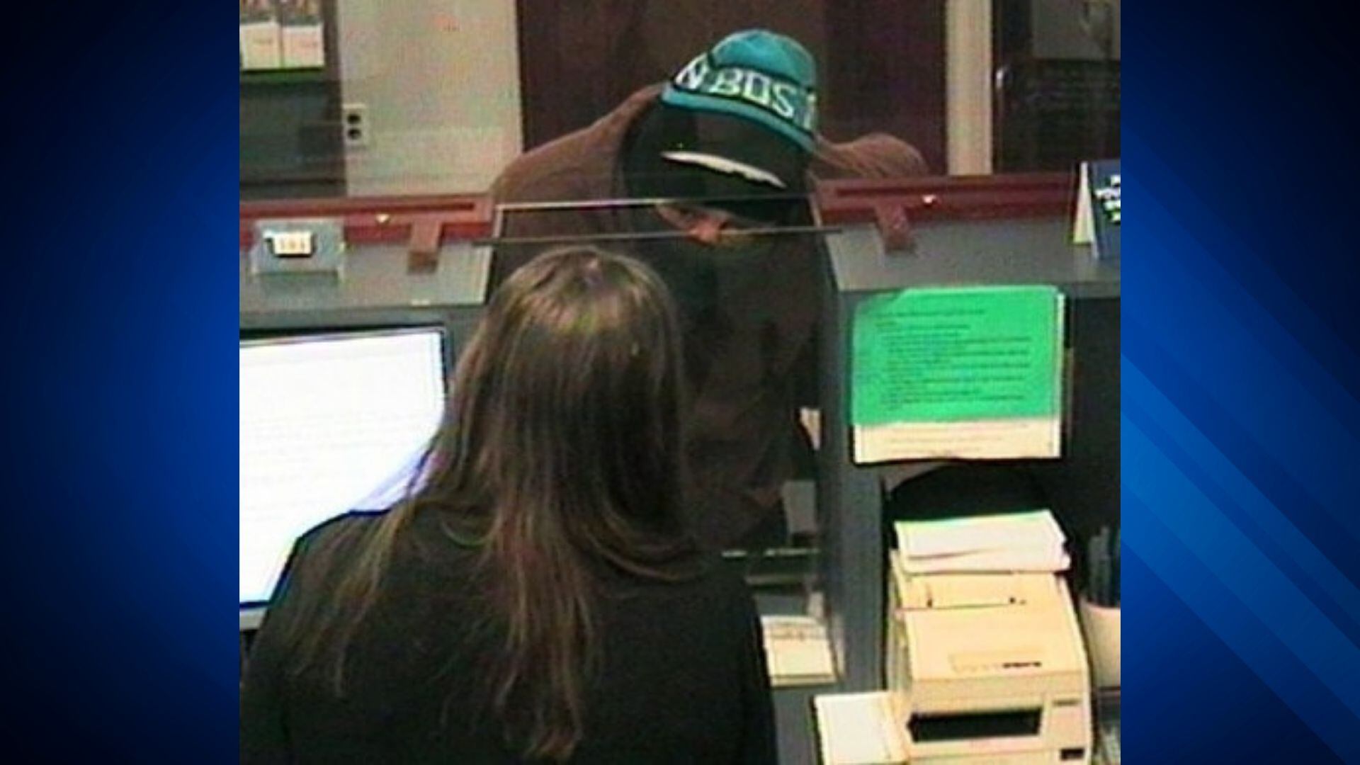 Police describe the suspect as being a heavyset male. At the time of the robbery the suspect was wearing a black neck gaiter, a Boston Celtics knit hat, a brown jacket, black pants and red shoes.