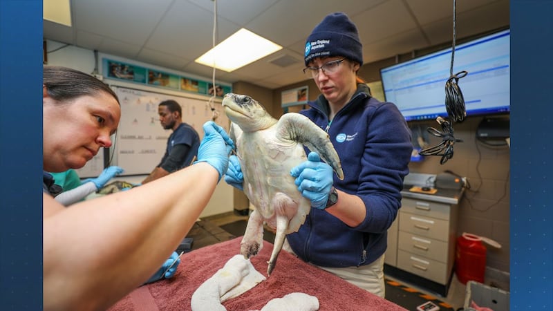 QUINCY, Mass. — With the annual sea turtle cold-stunning season coming to a close in mid-January, there are still dozens of turtles who are in critical condition at the Aquarium’s Sea Turtle Hospital in Quincy.