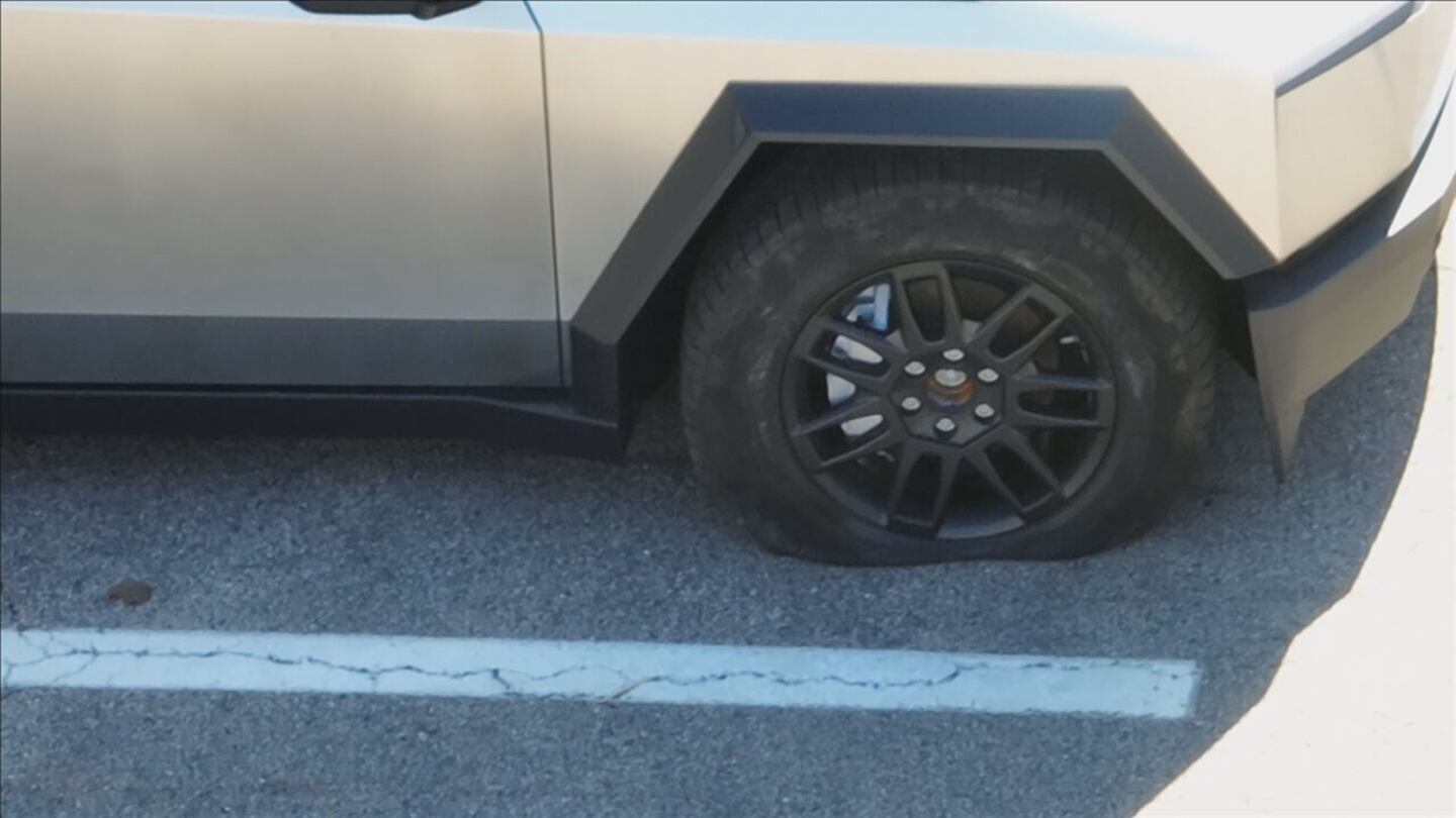Drone video captured by a Boston 25 News photographer showed one Cybertruck at the dealership with flat tires.