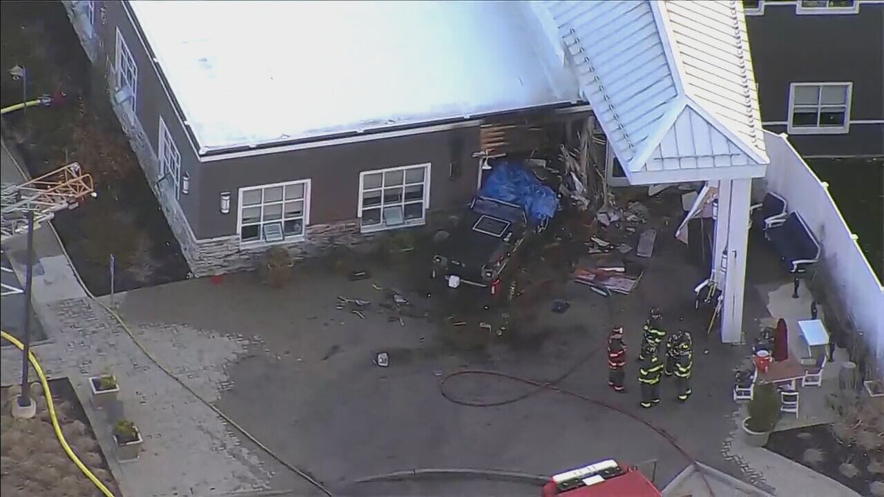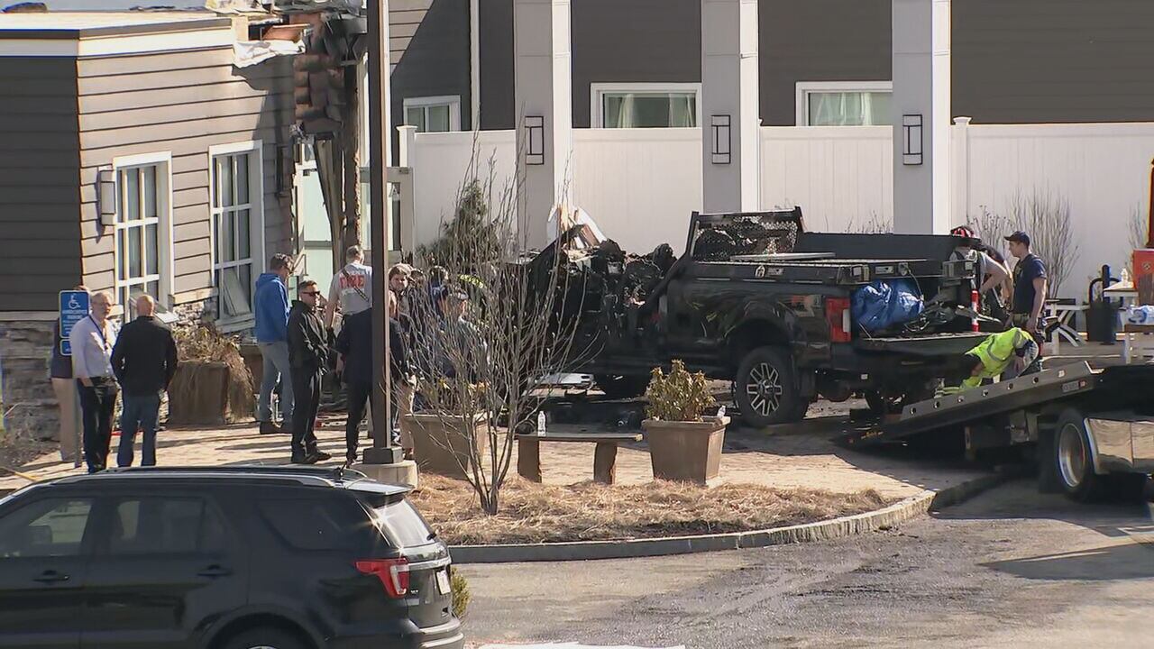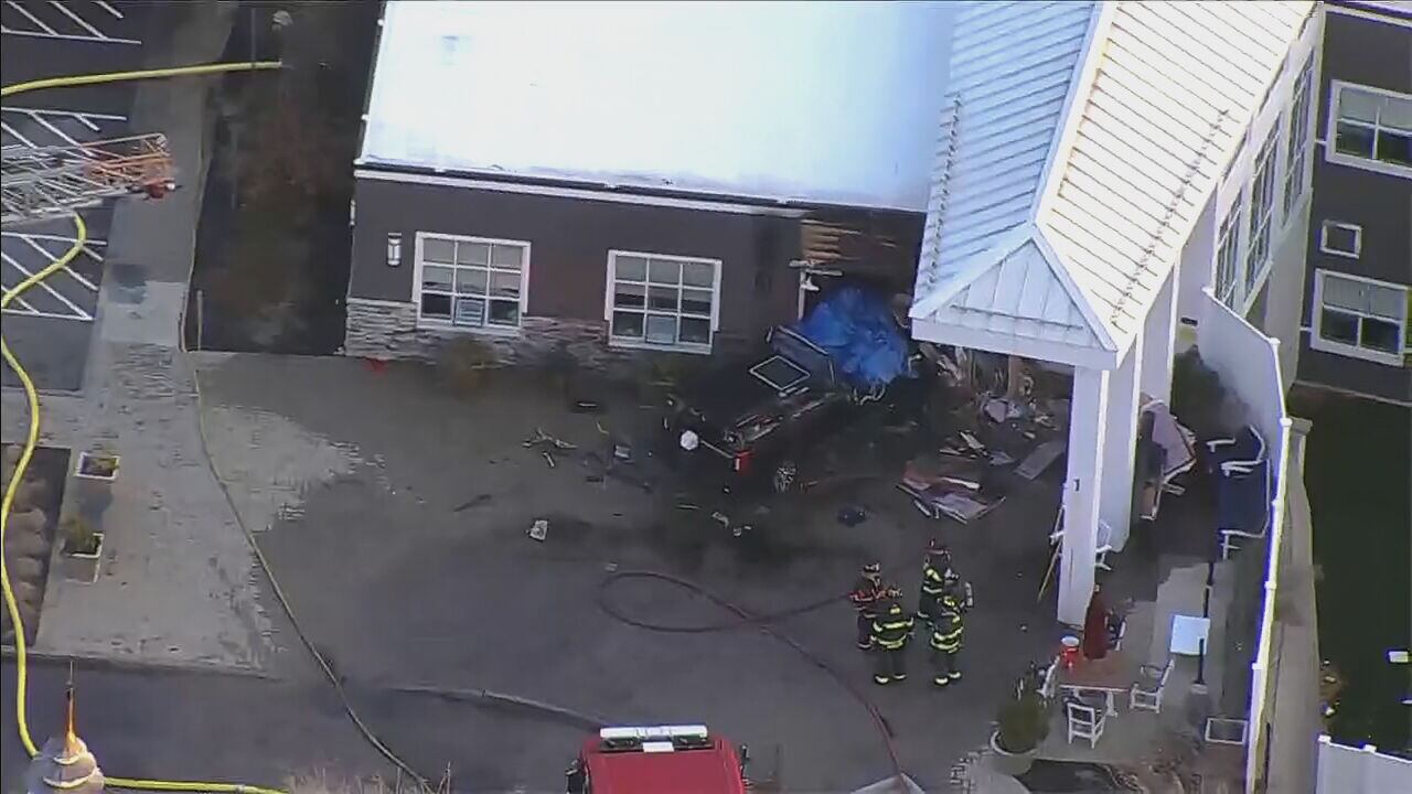 The crash happened at TaraVista Behavioral Health Center on Patton Road shortly after 5:30 a.m., according to Massachusetts State Police. Video from the scene showed a black pickup truck lodged in the side of the building near the main entrance.