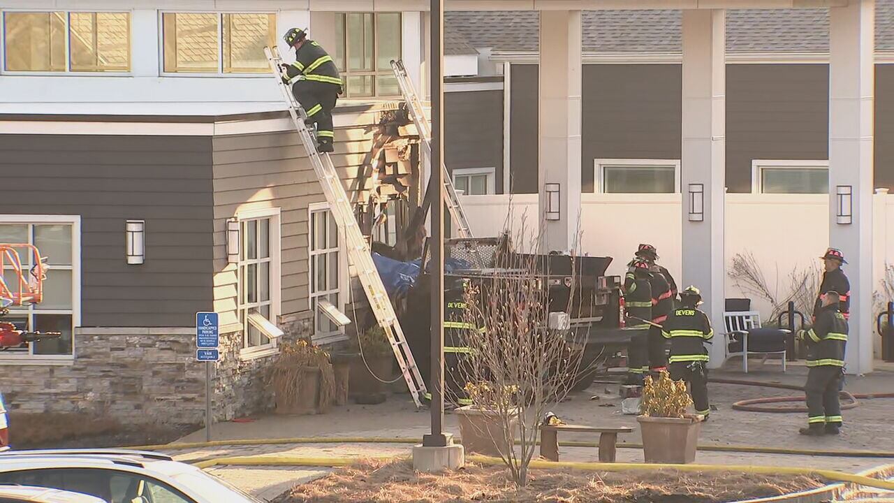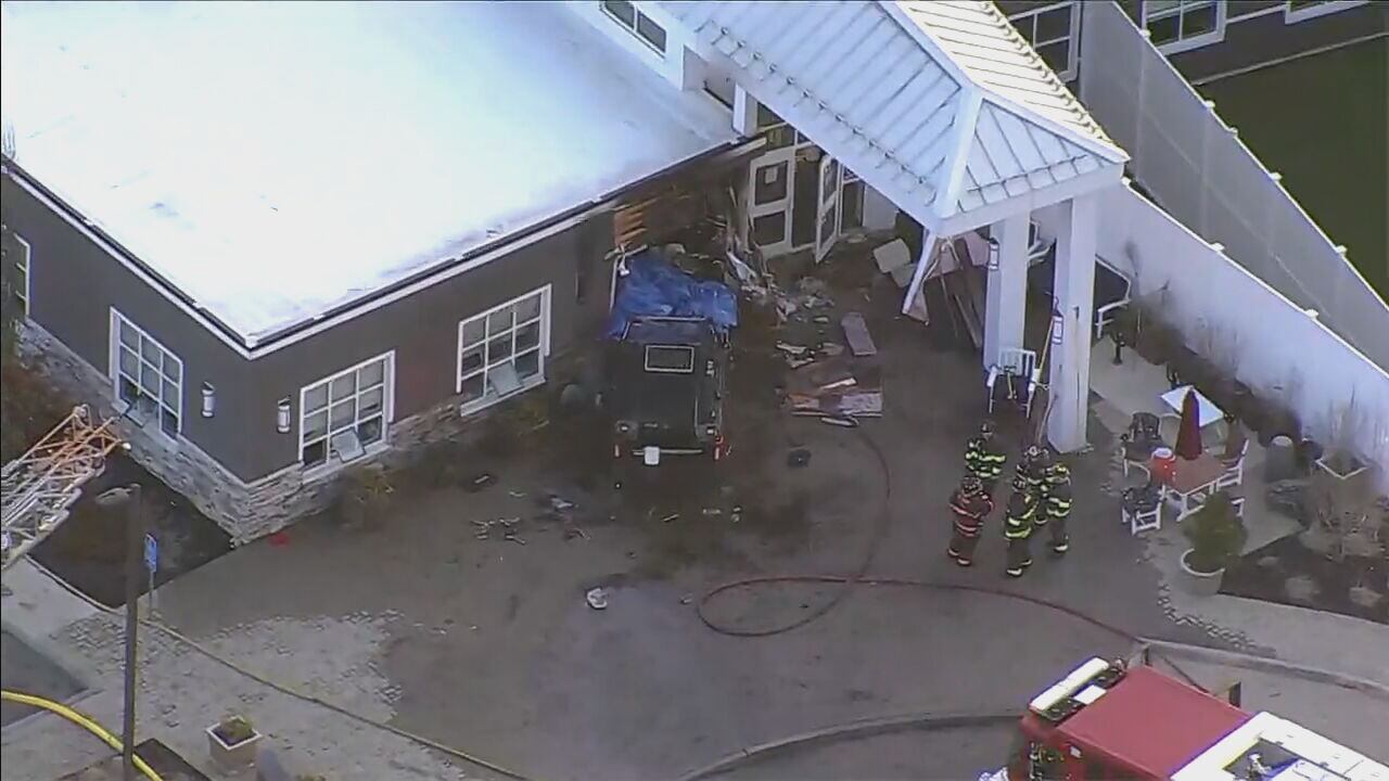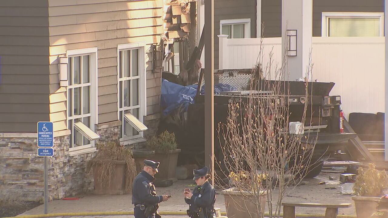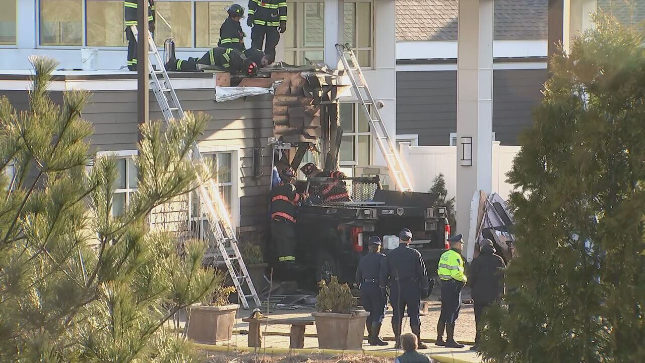 The crash happened at TaraVista Behavioral Health Center on Patton Road shortly after 5:30 a.m., according to Massachusetts State Police. Video from the scene showed a black pickup truck lodged in the side of the building near the main entrance.