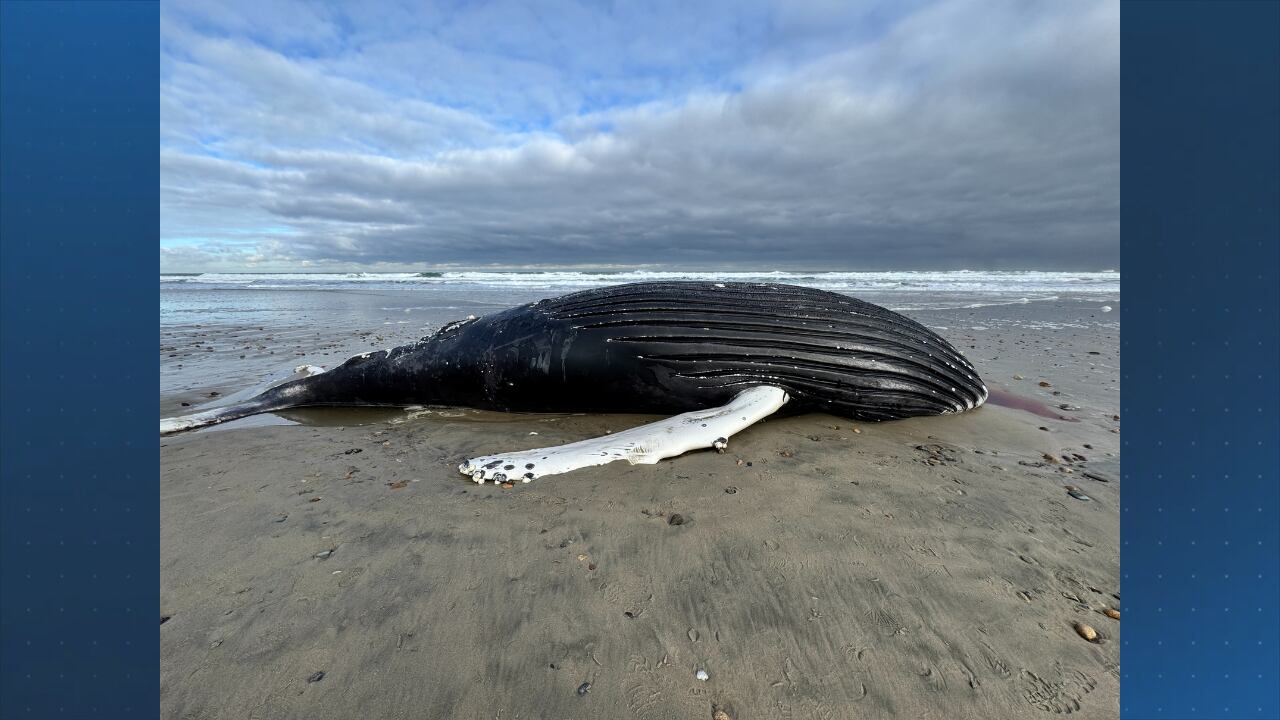 Wildlife officials are trying to determine what caused a humpback whale to wash ashore in Marshfield.