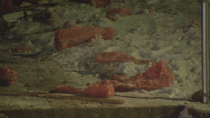 Video from the scene showed a gaping hole in the front of the home and splintered debris scattered in the yard.