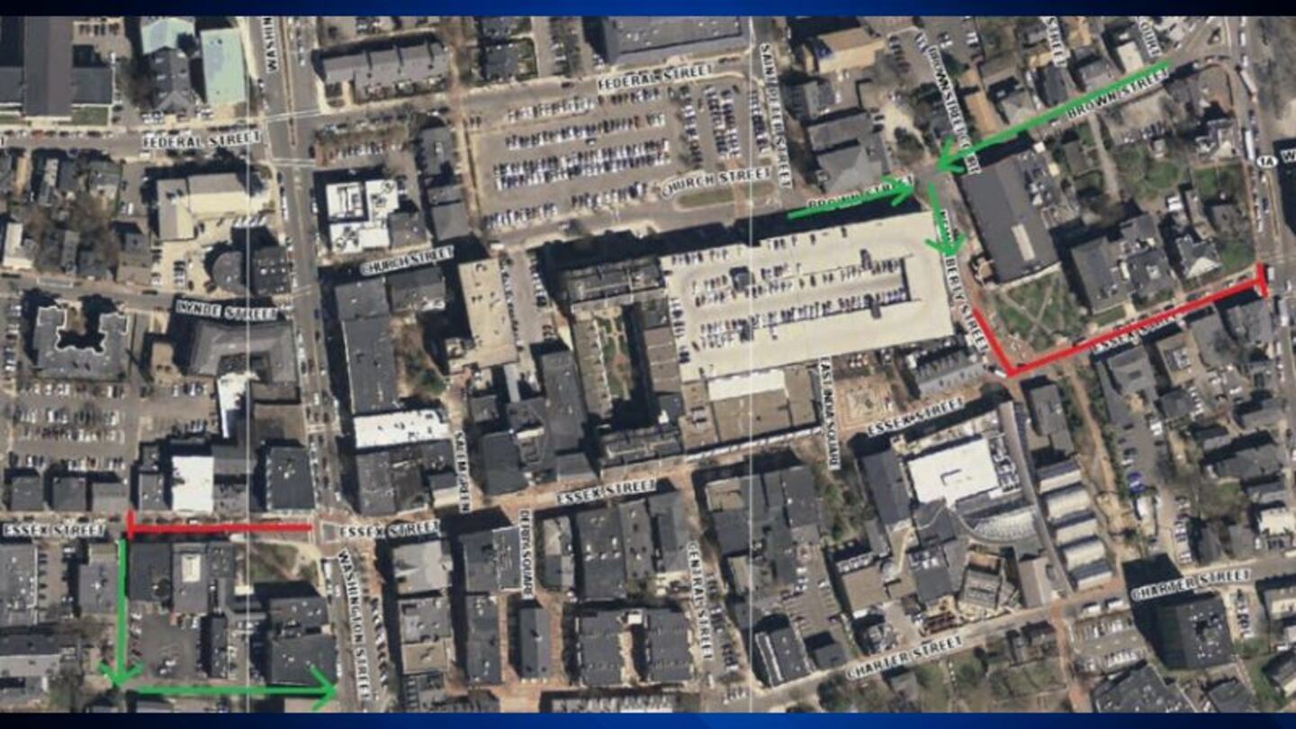 Essex Street from Hawthorne Boulevard to New Liberty Street and Essex Street from Barton Square to Washington Street will be closed to through traffic and no on-street parking will be allowed from 9:00 a.m. to 10:00 p.m. every Saturday and Sunday. Access to the Museum Place Garage will be via Brown Street only.