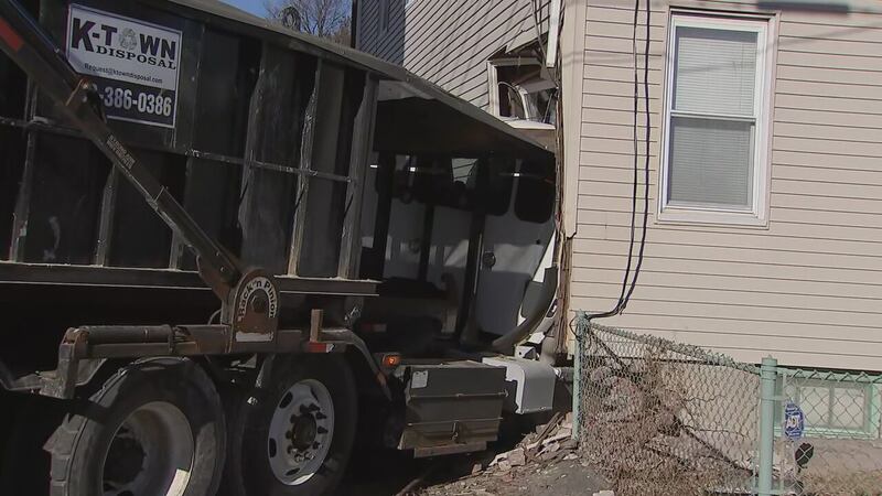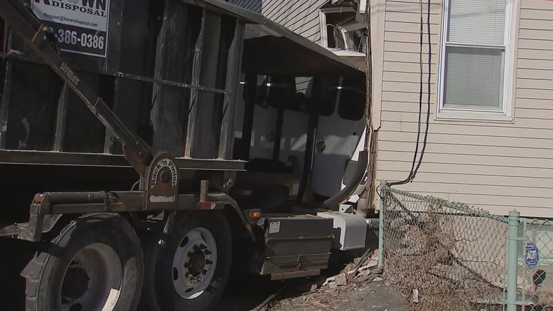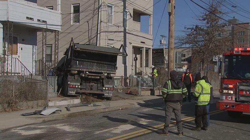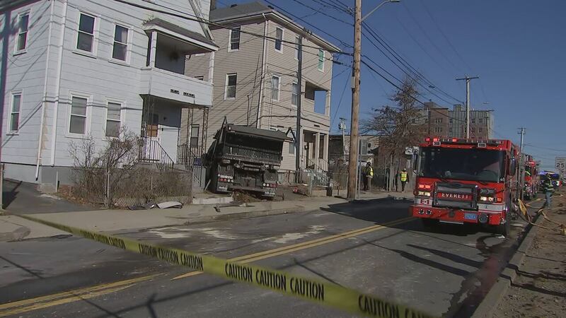 EVERETT, Mass. — A family home in Everett sustained heavy structural damage after a truck crashed into it on Friday morning.