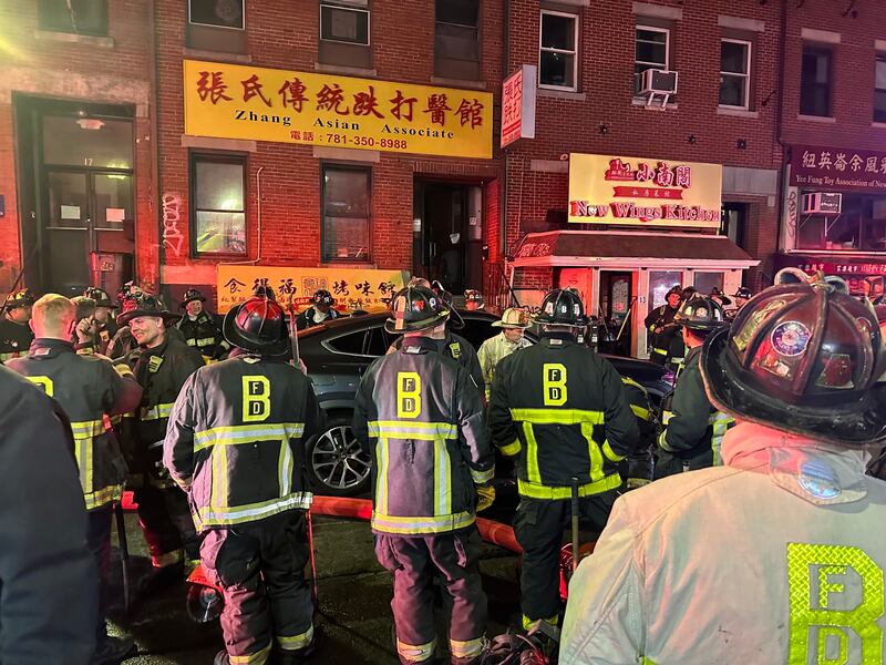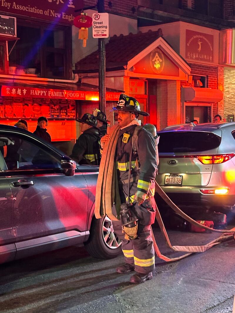 Crews responding to a report of a fire at Great Barbecue at 15 Hudson Street in Chinatown around midnight found flames on the first floor, according to the Boston Fire Department.