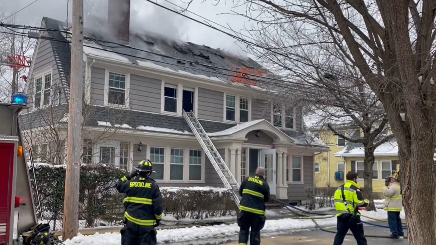 BREAKING: @BrooklineFD battling a house fire on Beaconsfield Road. Smoke is pouring from the roof and firefighters are going inside the home@boston25 pic.twitter.com/7HwLmmwlmV