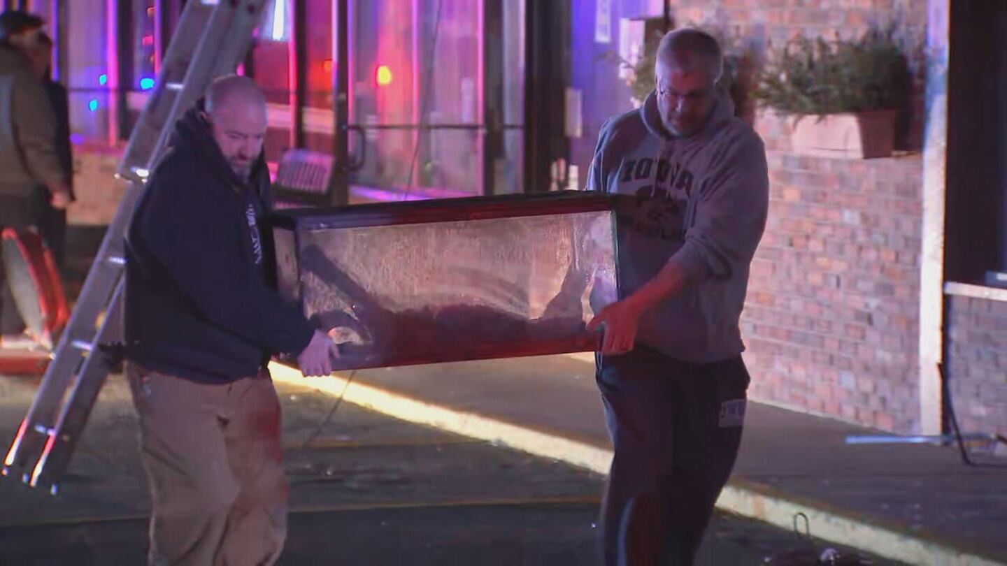 Firefighters from Melrose, Lynnfield, North Reading, Stoneham, Woburn and Wakefield could be seen carrying out numerous tanks and terrariums from North Shore Animal Academy around 9:00 p.m., after smoke from the store wafted into nearby Dino’s Pizza around an hour and a half earlier.
