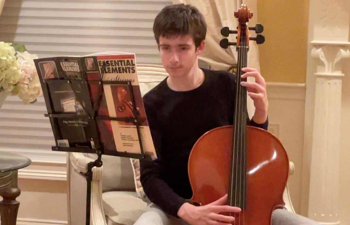The school held the service to help their community grieve. The 12-year-old loved playing his cello which was displayed in front, along with one of his 6th-grade projects.