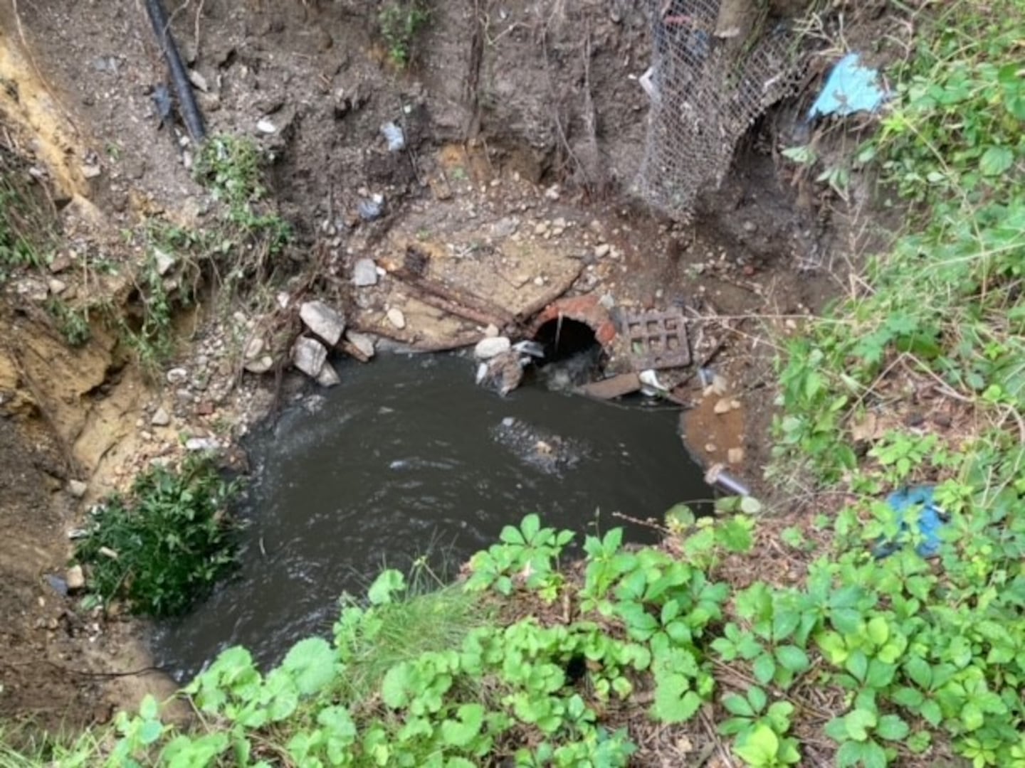 Mayor Fiorentini said the large sink hole, roughly 20 feet deep and 20 feet wide, tore open a large old brick sewer pipe, causing upward of $1 million in damages.