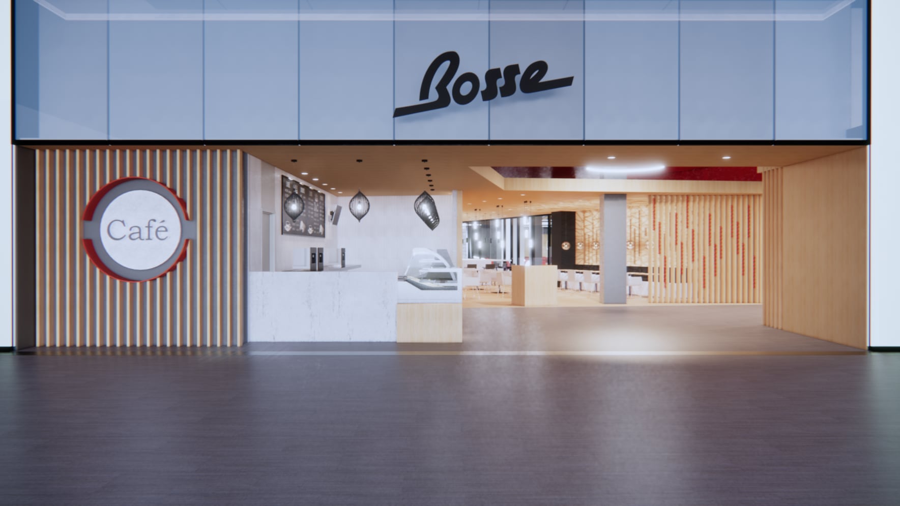The four dining concepts under the BOSSE roof, include an elevated restaurant with a variety of rustic Italian dishes; an all-day café featuring coffee, smoothies, and Parisian-inspired baked goods, a courtside culinary experience featuring zippy menu items, and a sports bar and lounge with state-of-the-art viewing screens.