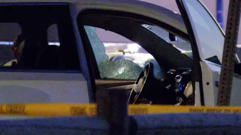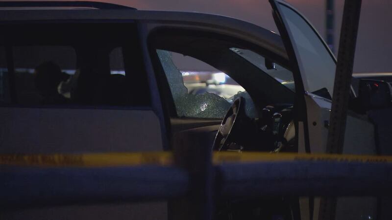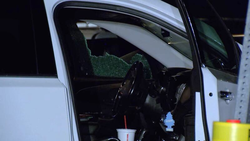 Investigators appeared to be focused on a white Chevy Traverse SUV, specifically the driver’s side window that had been shot out.