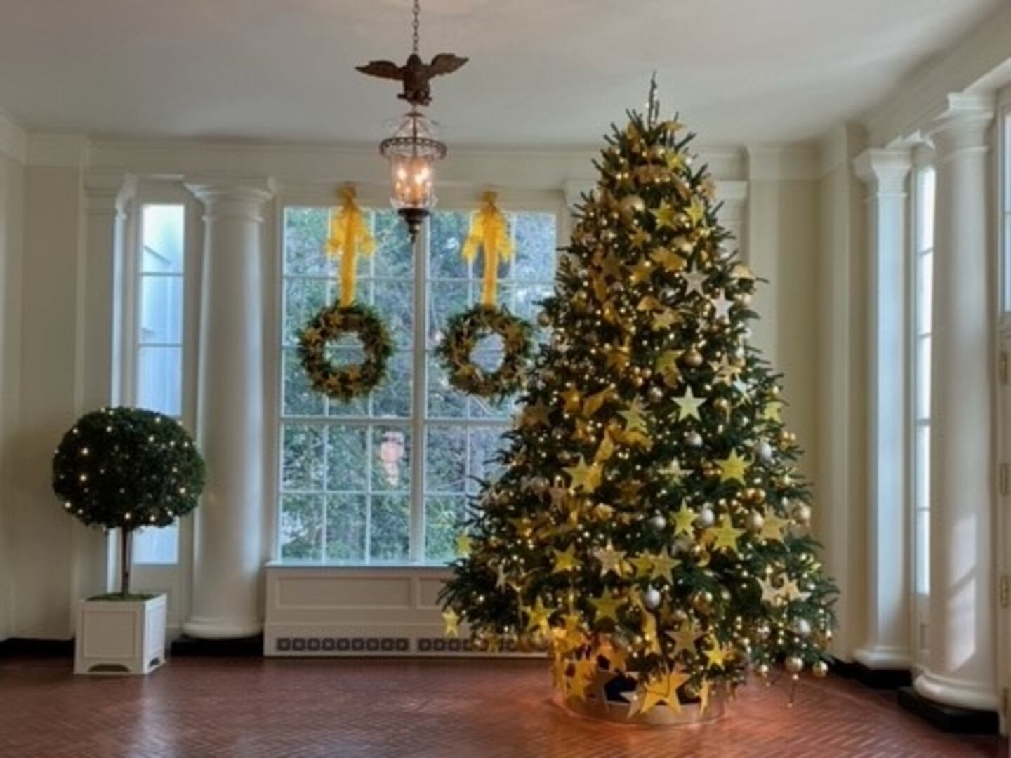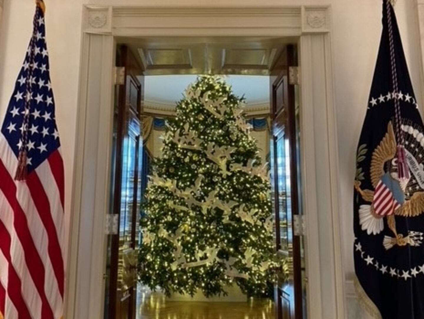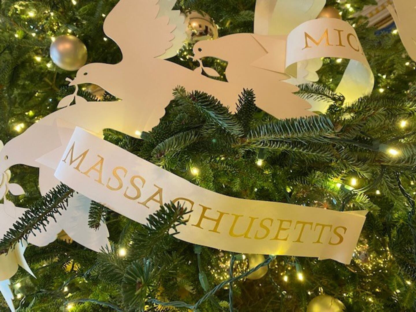 One of the biggest symbols of unity the tree in the Blue Room, the official White House Christmas tree. It’s a tree dedicated to all 50 states and the U.S. territories, featuring all state names woven among doves.
