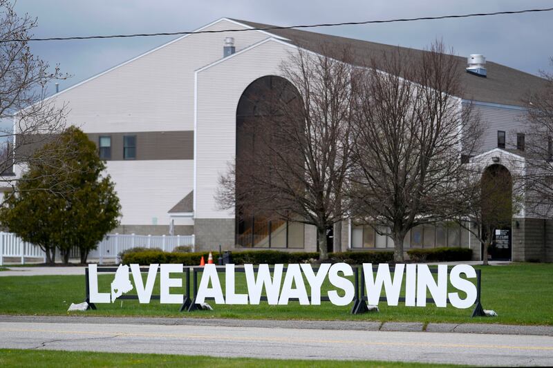 Lewiston bowling alley reopens 6 months after Maine's deadliest mass shooting A sign of positivity decorates the lawn at Just In Time Recreation, Wednesday, May 1, 2024, in Lewiston, Maine. The bowling alley, where eight people were killed in last October's mass shooting, was scheduled to reopen Friday, May 3. (AP Photo/Robert F. Bukaty) (Robert F. Bukaty/AP)