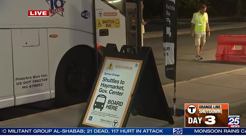 BOSTON — The shutdown of the MBTA Orange Line is getting its first-morning commute tests this week. The 30-day Orange Line shutdown began Friday night meaning commuters will have to try alternative routes such as the Commuter Rail, shuttle buses, driving, riding bicycles, or just walking to get to their jobs, appointments, or classes. Here’s some information to know immediately as you check in on how it’s going, with the threat of rain on Monday.