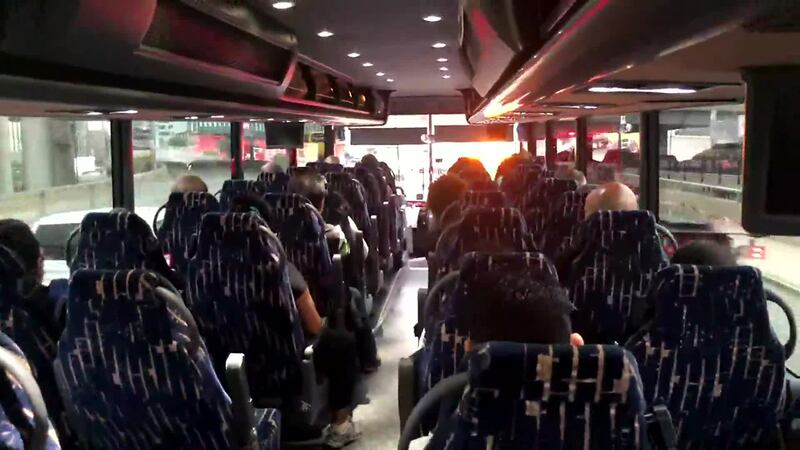 7:10 am: Videographer Andy Devine is on board a shuttle bus with commuters from Wellington station to Government Center.