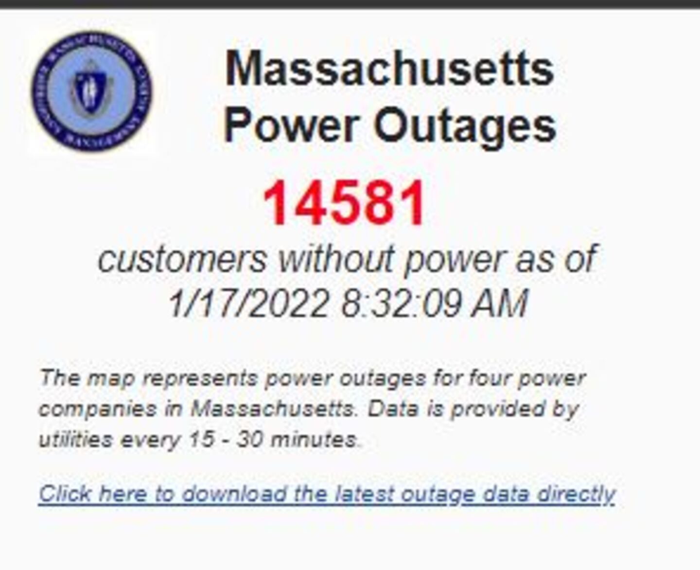 Utilize MEMA’s real-time power outage viewer to stay informed about current power outages in your community and region, and across the state, including information from utility companies about restoration times.