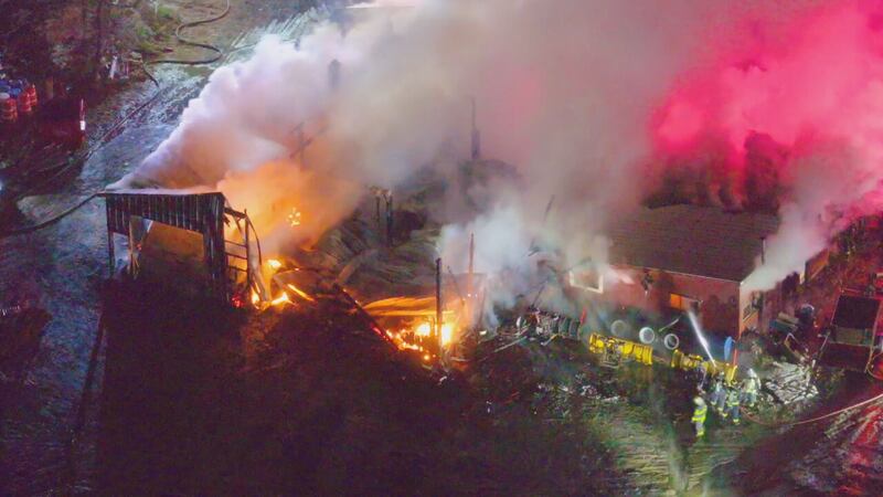 Crews responding to “at least seven 911 calls” for a large structure fire in the area of Southworth Street in Lakeville just before 7 p.m. learned a neighborhood resident heard a loud explosion that shook his home before spotting flames engulfing a shop and storage area on the Angers Conway Farm, according to the Lakeville Fire Department.