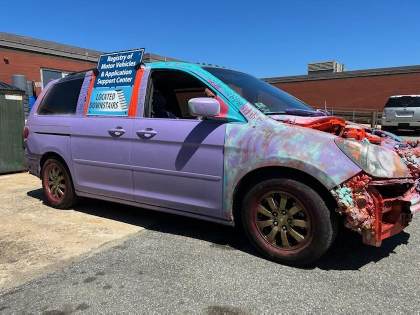 “The vehicle was painted pink, blue, green and purple and had notes written all over in Sharpie marker,” according to an incident report.