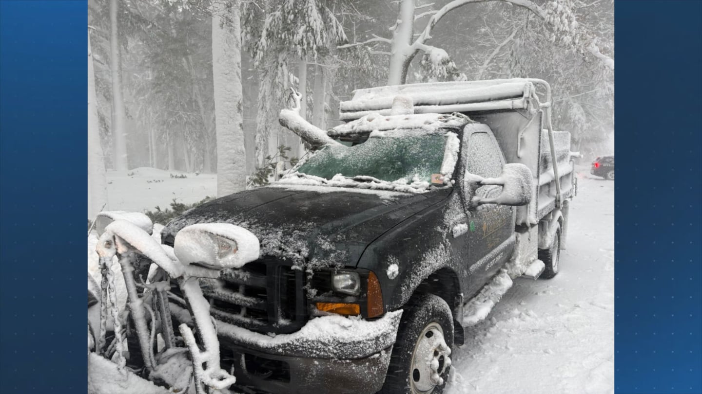 KINGSTON, Mass. — A Massachusetts snowplow driver experienced a life-threatening close call on Monday when a large tree branch fell and pierced through his windshield, missing him by inches.