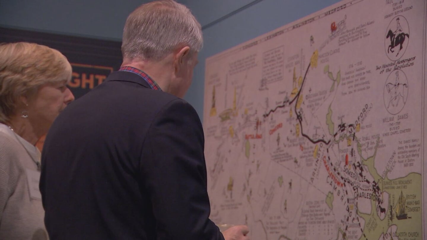 Items on display include a copy of the 1776 Declaration of Independence printed in Boston and letters from Paul Revere.