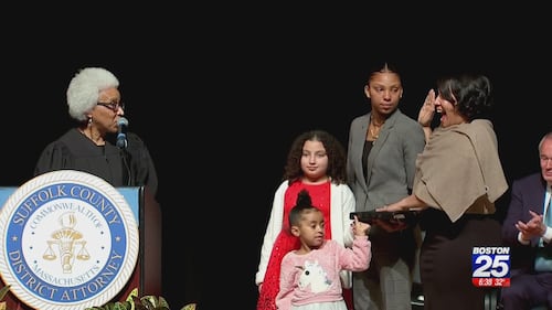 Massachusetts US Attorney FILE - U.S. Attorney Rachael Rollins, for the Massachusetts Disctrict, listens during a news conference at the Moakley Federal Courthouse, May 24, 2022, in Boston. Rollins' attorney says she will resign after a monthslong ethics investigation by the Justice Department's inspector general into her appearance at a political fundraiser and other potential issues. (AP Photo/Charles Krupa) (Charles Krupa)
