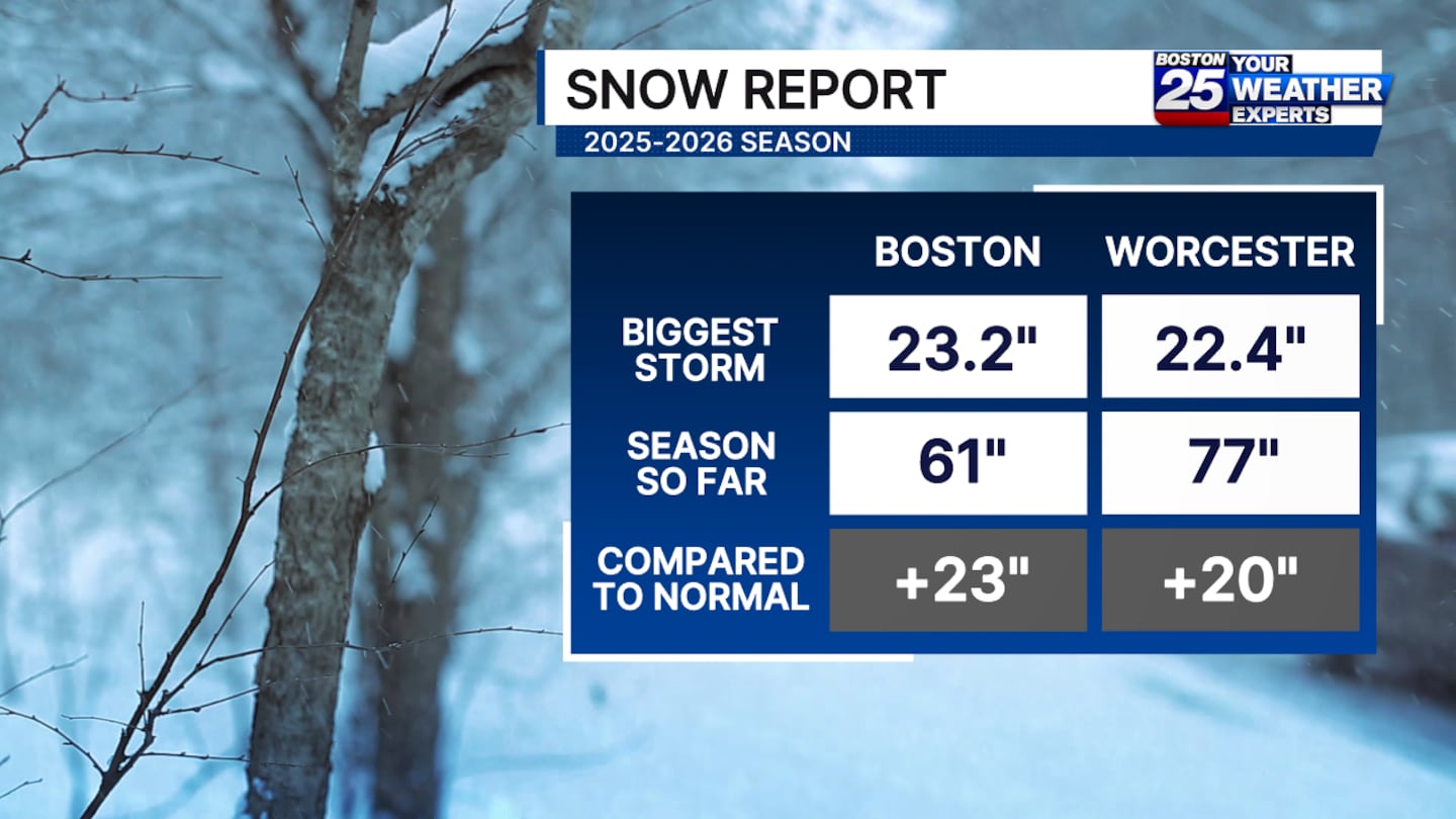 It took until the 11th for Boston to record it’s first warmer than average day and we’ll finish this month with only five days reaching 40 degrees! Of course, this one will be remembered for the blizzard of 2026, which officially dumped 17.1″ of snow in Boston, but hammered SE Mass and Rhode Island with 24-36″ of snow! It was our first true blizzard in four years and officially pushed our season snowfall to the highest mark since the infamous 2014-2015 season.