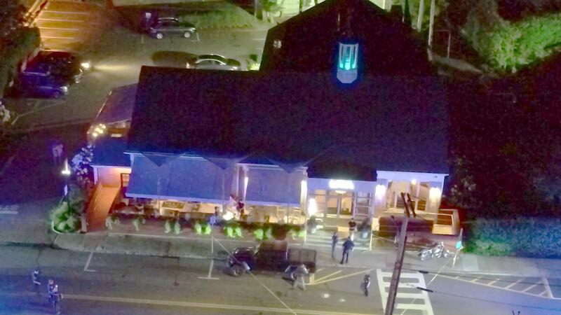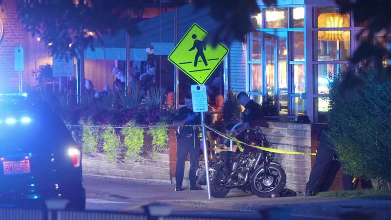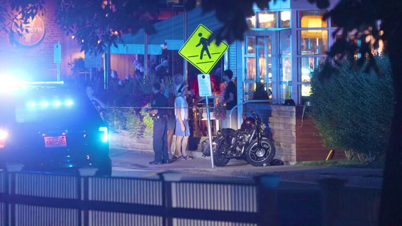 Video from the scene showed the motorcycle in question on the sidewalk in front of the restaurant and detectives roping off the scene with yellow tape as concerned diners looked on.