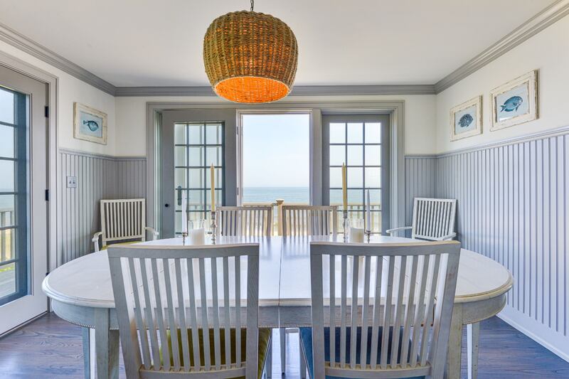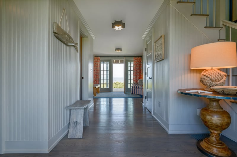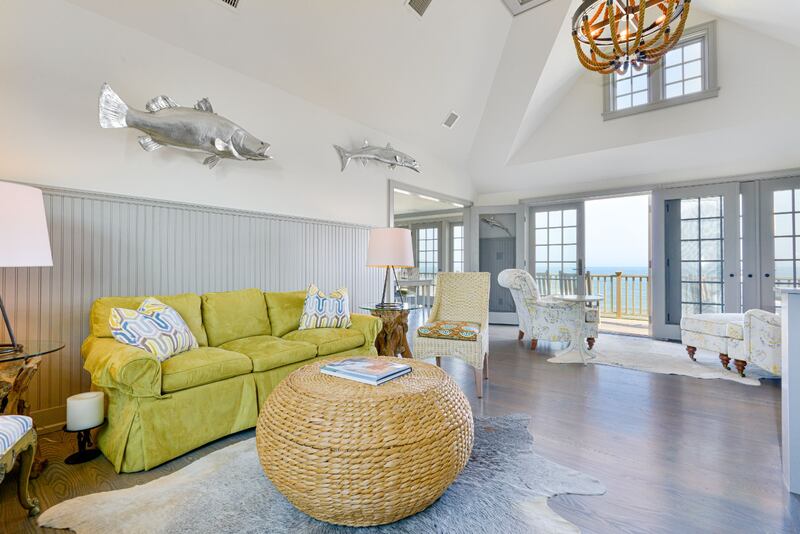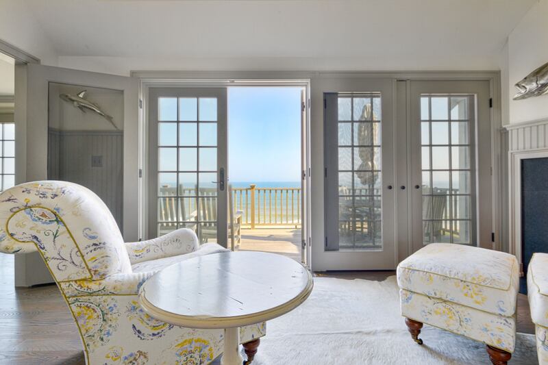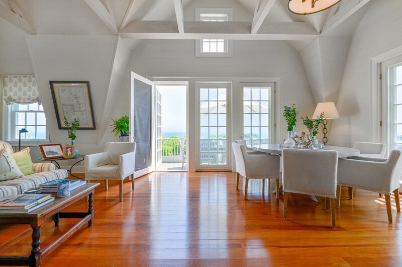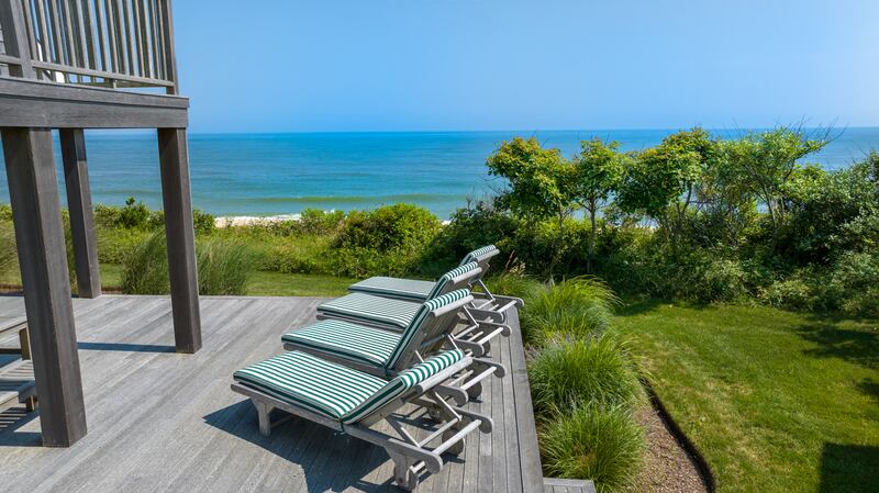 The spectacular three-bedroom, three-and-half-bath waterfront home perched on the cliff is located at 15 Lyford Rd. and may be purchased on its own for $7,995,000 with deeded beach stair access, according to the listing.
