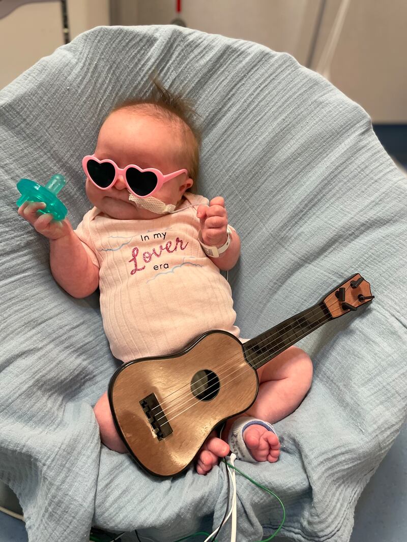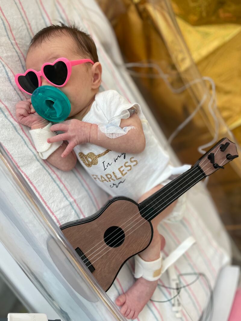 Inside the Neonatal Intensive Care Unit (NICU), newborns are stealing hearts dressed in era-themed onesies, tiny sunglasses, and even cradling miniature guitars.