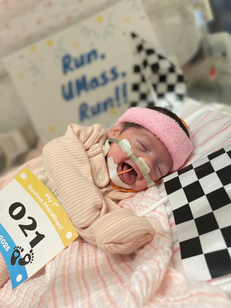 WORESTER, Mass. — They may not have run in the big race Monday but these newborns at UMass Memorial’s NICU, swapped out their bibs, put on head bands.... and then got some much-deserved sleep.
