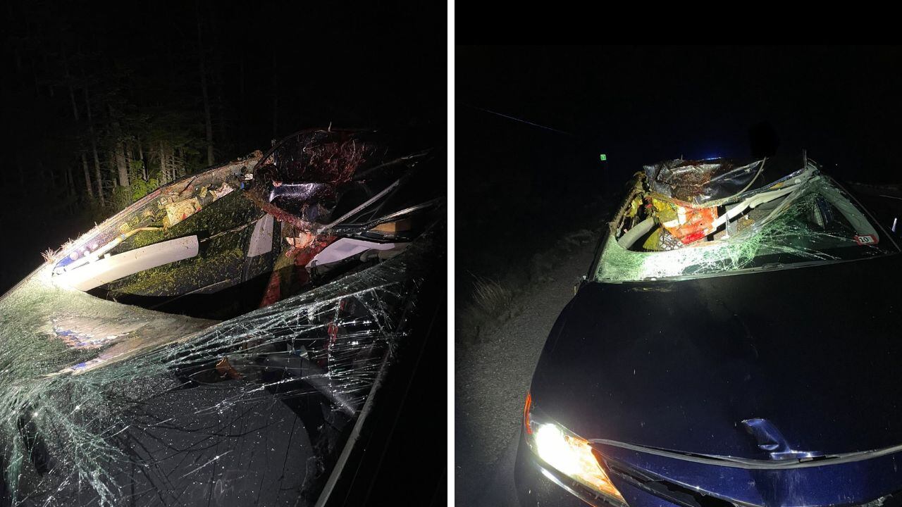 The moose was killed on impact, but the driver and passenger were not injured according to officials.