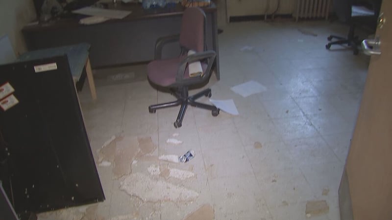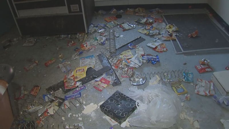 Wheelchairs were seen in hallways, items from a vending machine were strewn across the floor and a pool game was collecting dust on a table.